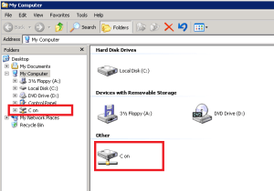 5. Sistemul la care m-am conectat este un XP dar ar putea fi si Vista sau 7. Este acelasi lucru ca si cum te-ai conecta la un Share doar ca in felul asta maparea se creaza automat. Ceea ce este “nice” este ca in felul asta poti copia sau muta prin drag and drop.