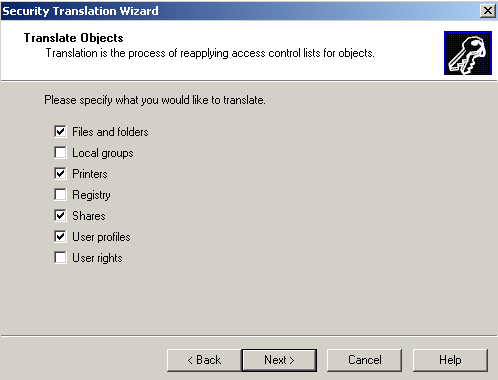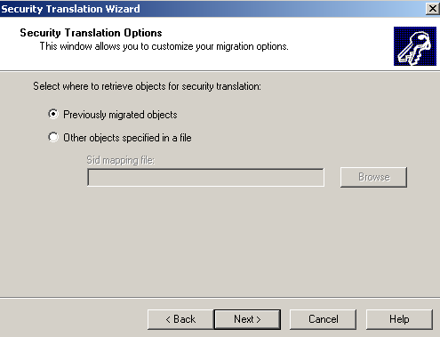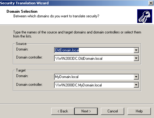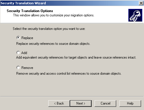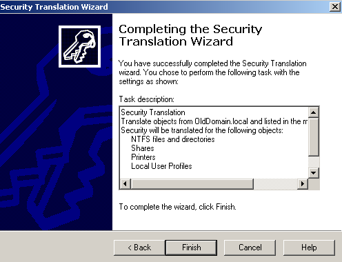 Dupa migrarea obiectelor in domeniul target resursele locale vor contine ACL-urile de la domeniul sursa. Folosind Security Translation Wizard putem actualiza aceste permisiuni cu noile SID-uri, asta in cazul in care s-a mers pe migrarea folosind SID History. Dupa ce s-am migrat toate obiectele dorite din domeniul sursa putem rula wizard-ul.