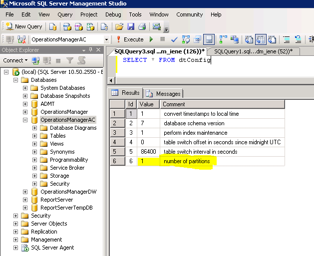 Si, am rulat pe baza de date OperationsManagerAC urmatorul query: