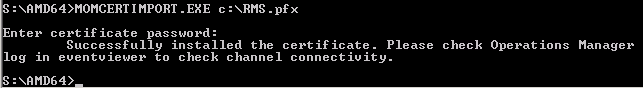 Acum trebuie folosit un tool MomCertImport.exe care se gaseste in \SUPPORTTOOLS\AMD64 de pe imaginea installerului SCOM 2012. Acest tool trebuie fie copiat local pe fiecare server fie facut acesibil in retea pentru a fi utilizat. Rulam aplicatia iar ca parametrii specificam calea catre .pfx.