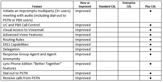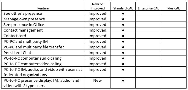 - CAL-urile Standard sunt necesare tuturor userilor interni ce acceseaza serverele de Lync. CAL-urile Enterprise si Plus sunt suplimentare licentei Standard. Pot fi adaugate individual sau impreuna licentei Standard CAL.