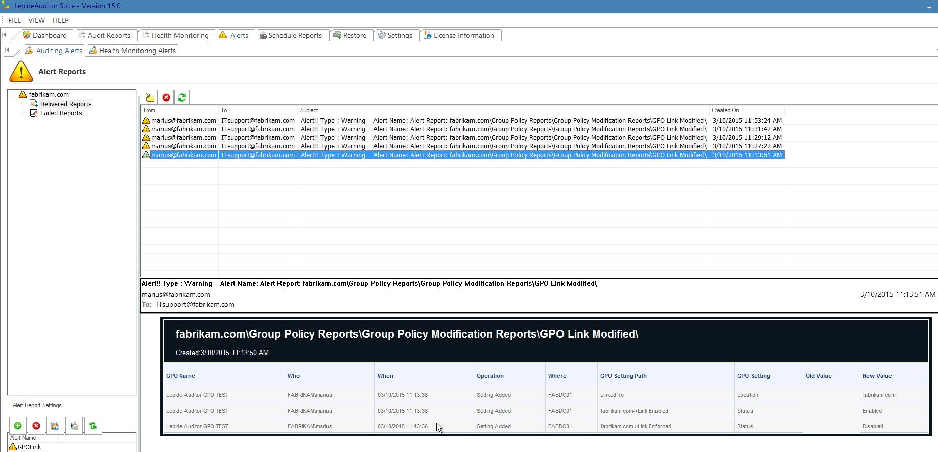 I’ve also scheduled a report that sends periodically related to GPO Link changes. This works great as you can see below: