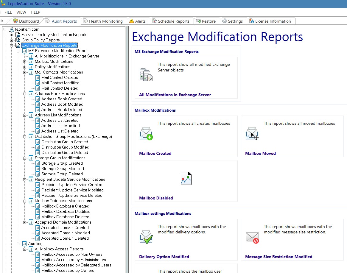 Exchange server is the typical enterprise email solution for many companies and sometimes evaluating the health or monitoring the changes can be a difficult task without a specialized software. LepideAuditor for Exchange Server covers all these tasks and more.