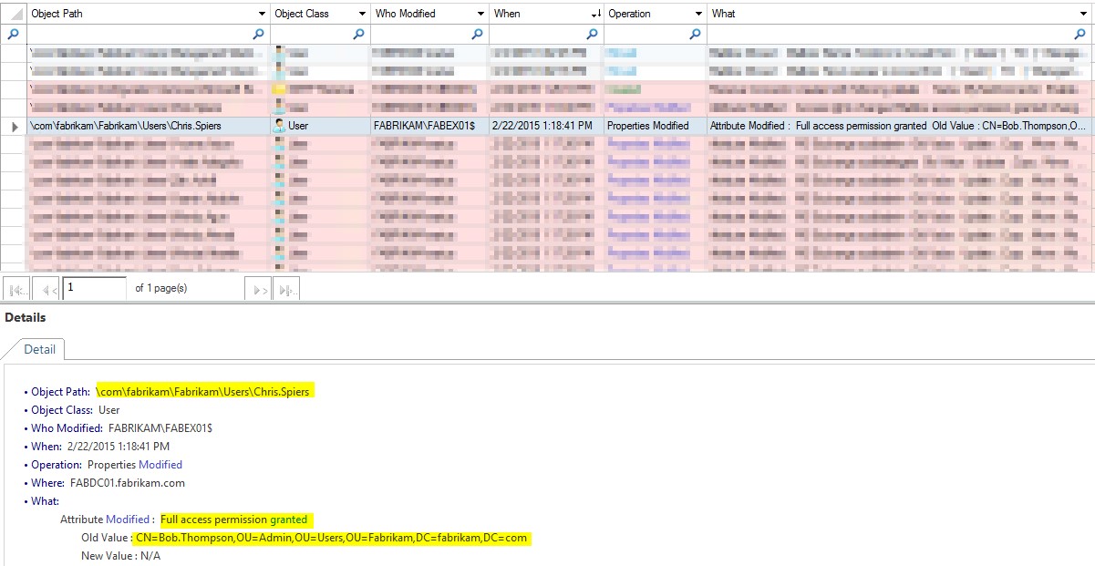 You can see when mailbox permissions were modified, database changes were performed, as you can see below