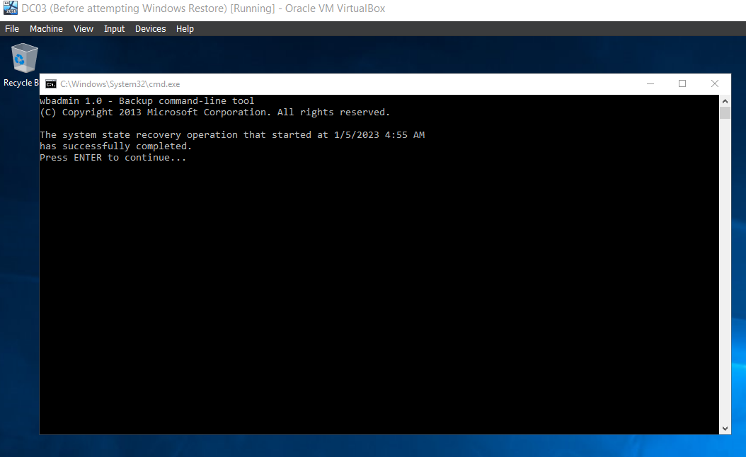 Note: This exercise was developed only for informational purposes and does not represent a full Active Directory backup solution. Forest recovery scenarios are more complex and require thorough planning.