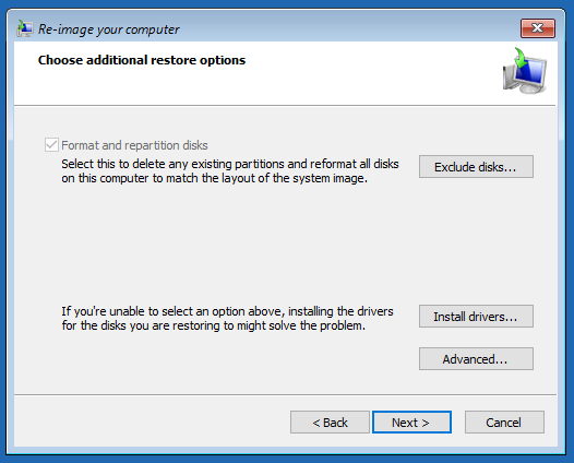 - The number drives on the target server needs to be equal to the number in the backup and they need to be the same size or greater.