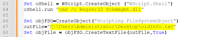 Note that the script will try to register the Schema dll, which we should have already performed and confirmed, and export to a file the information.