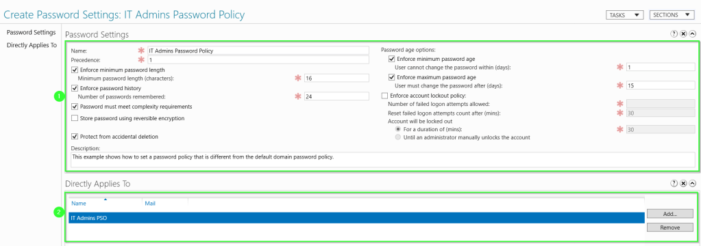 Note the precedence field. In case you have overlapping PSO’s this will define the order in which it needs to apply.