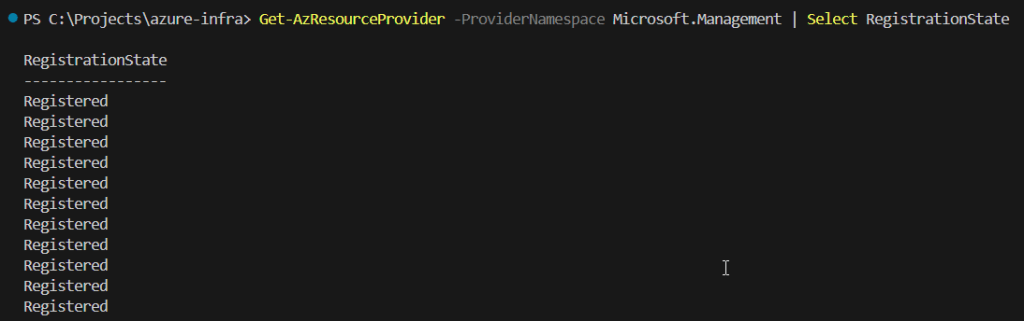 Get-AzResourceProvider -ProviderNamespace Microsoft.Management | Select RegistrationState