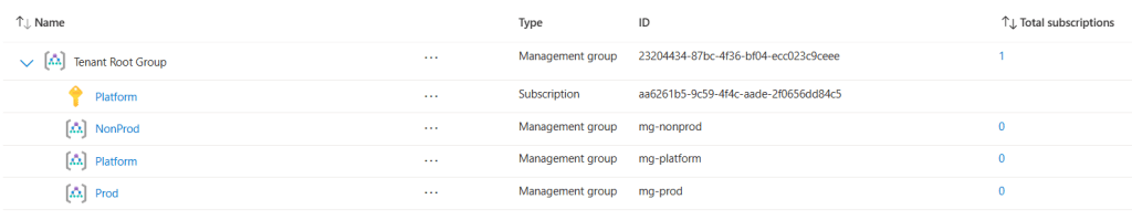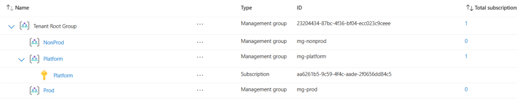 Now we move the ‘Platform’ subscription under the Platform management group.