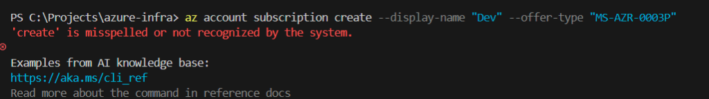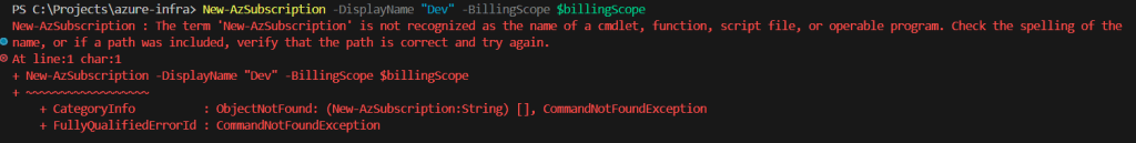 We will see that there is no New-AzSubscription cmdlet.
