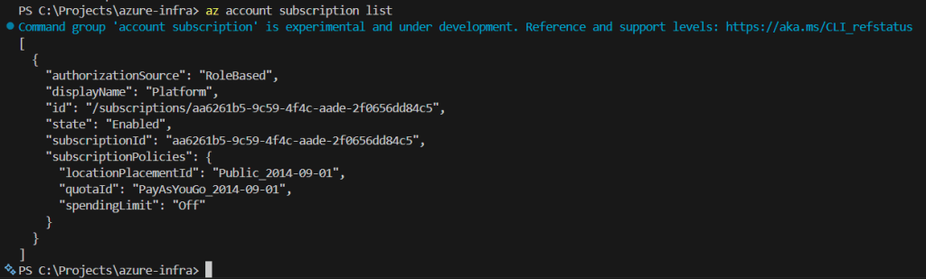 We can list our current subscription: