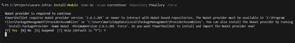 Install-Module -Name Az -Scope CurrentUser -Repository PSGallery -Force