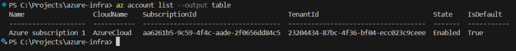 az account list --output table