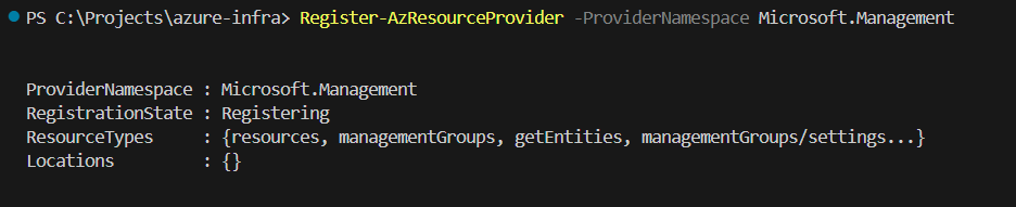 Register-AzResourceProvider -ProviderNamespace Microsoft.Management