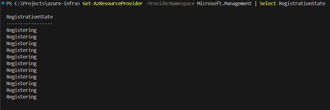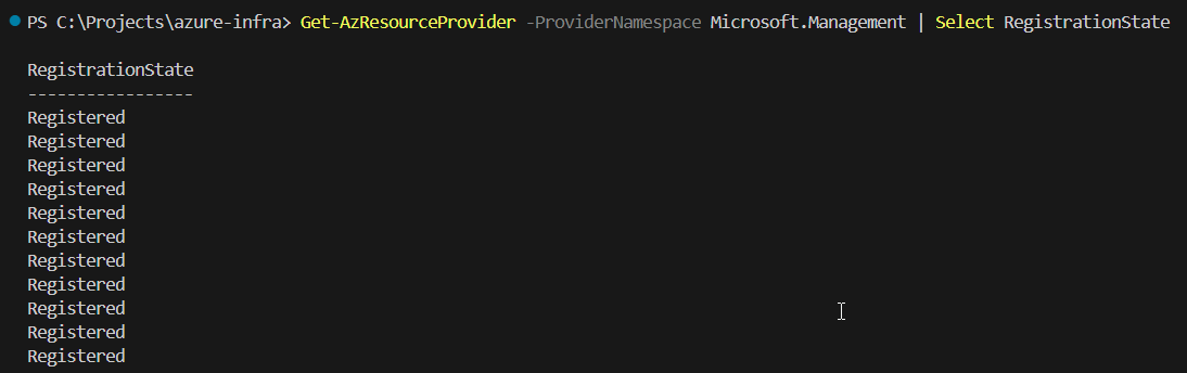Get-AzResourceProvider -ProviderNamespace Microsoft.Management | Select RegistrationState