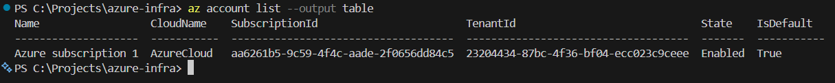 az account list --output table